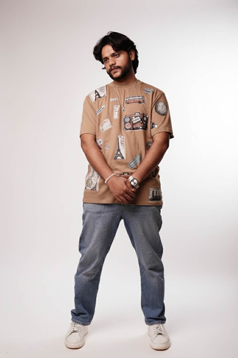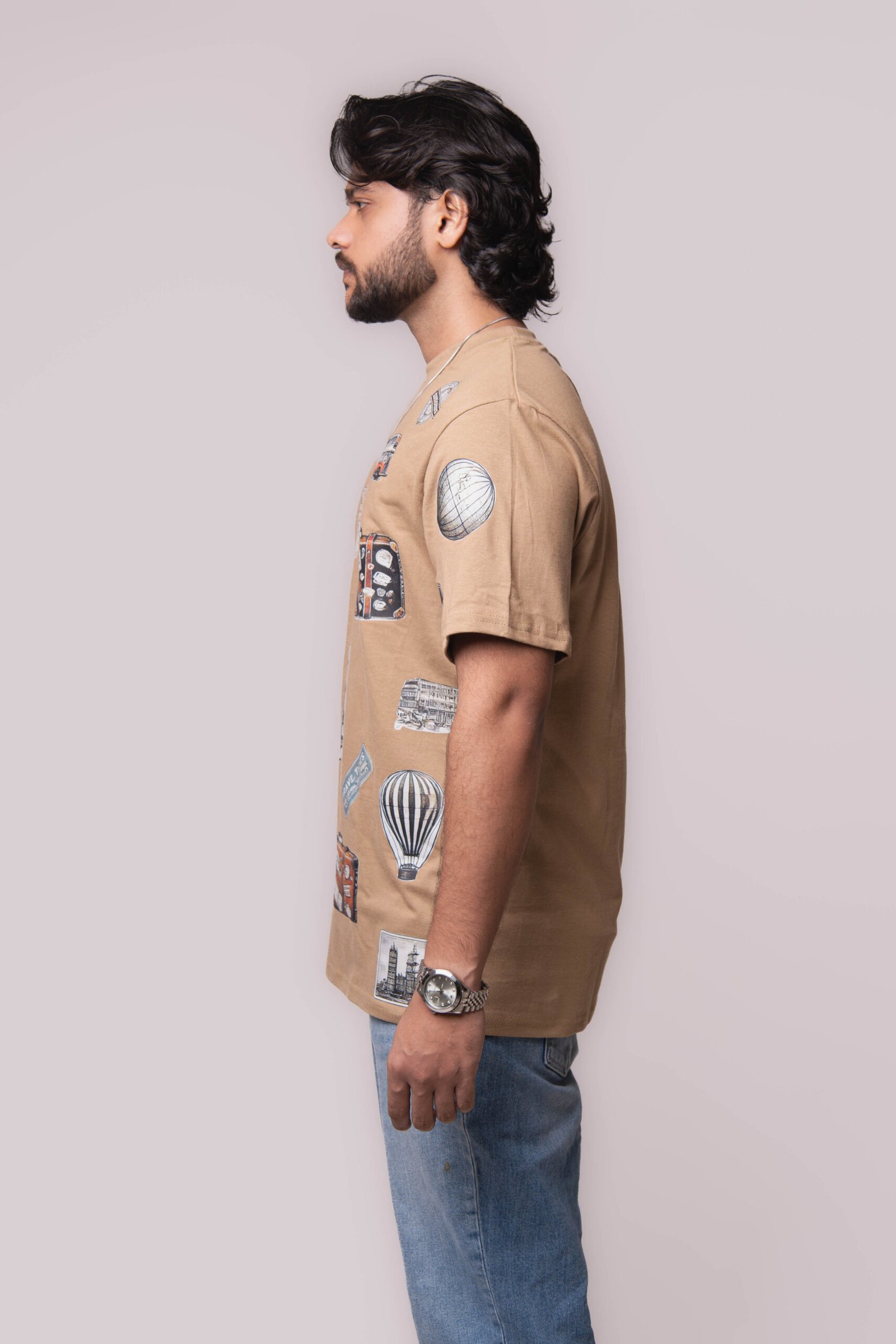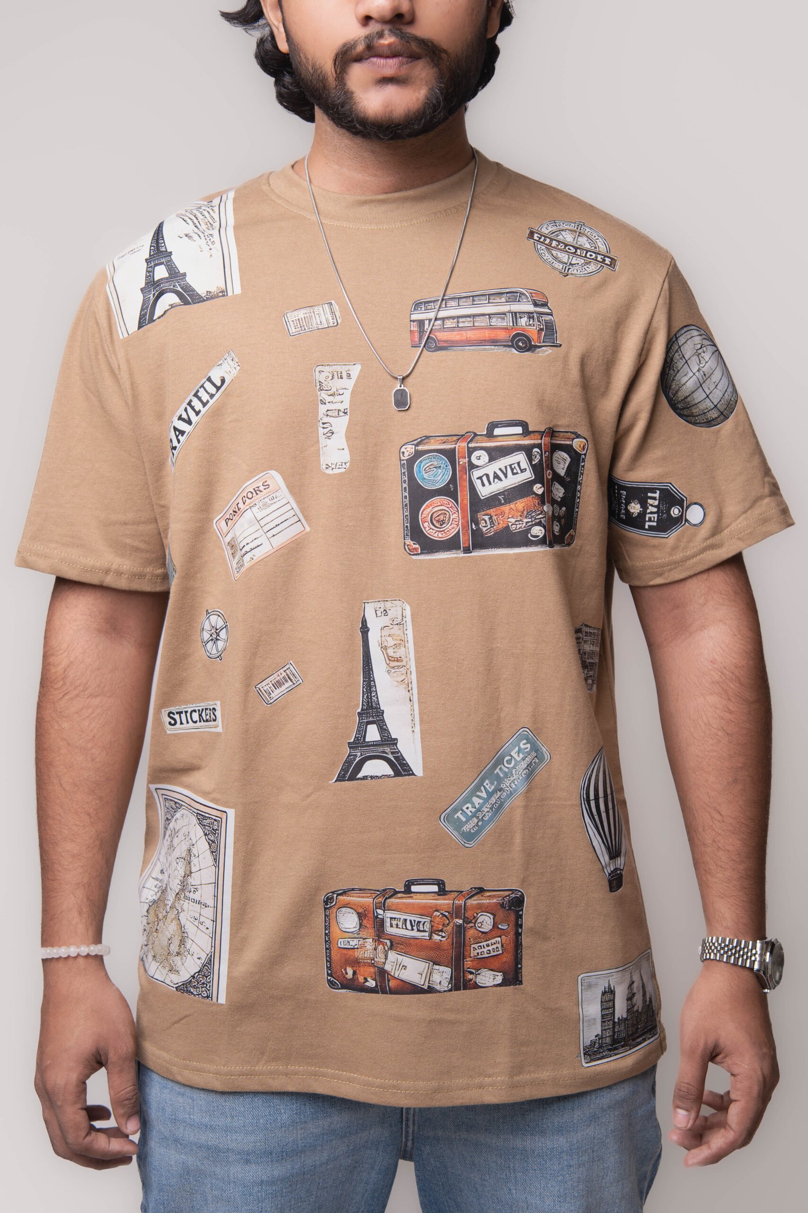 Men’s Graphic Beige T-Shirt – Casual Travel Print