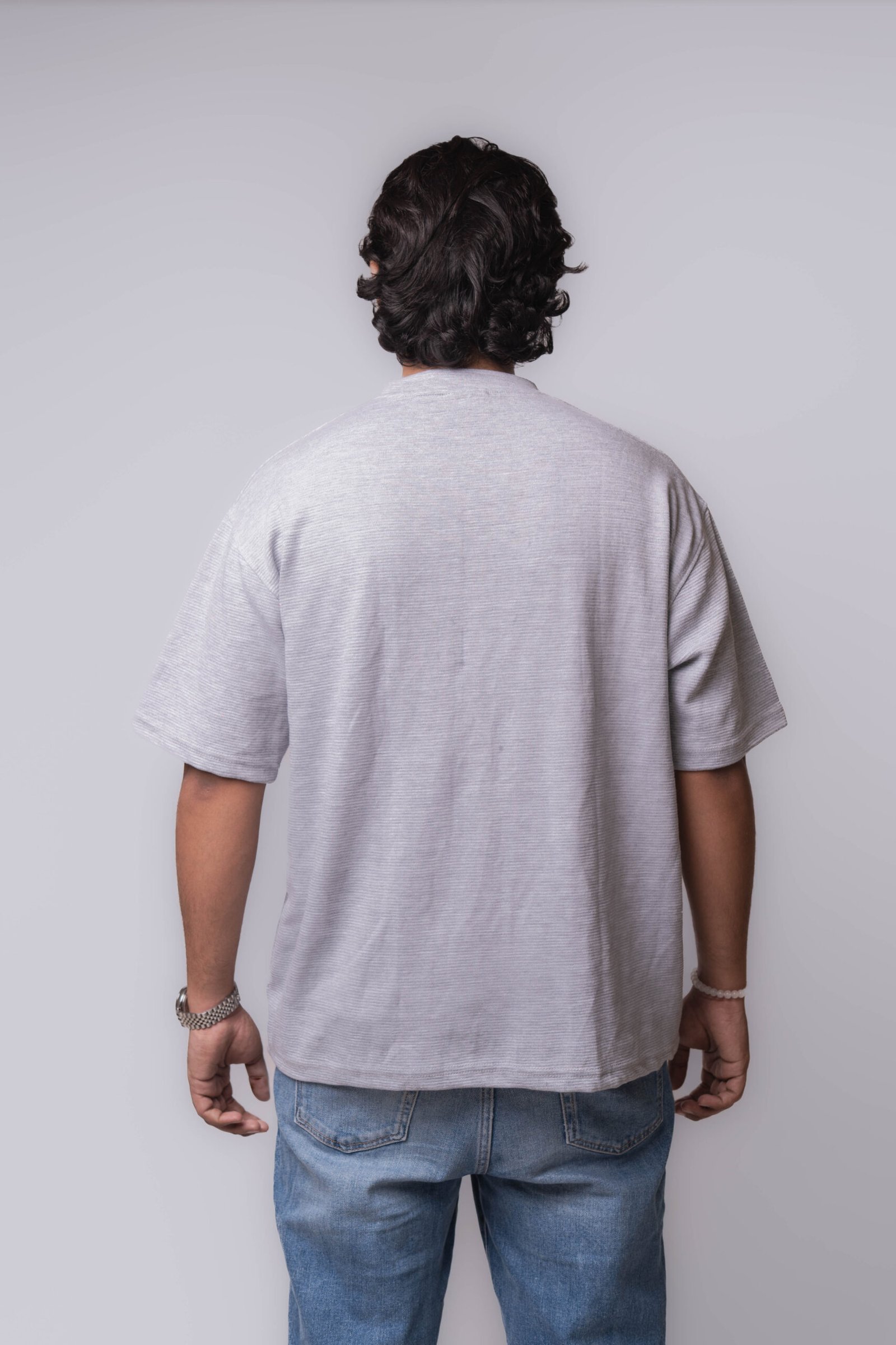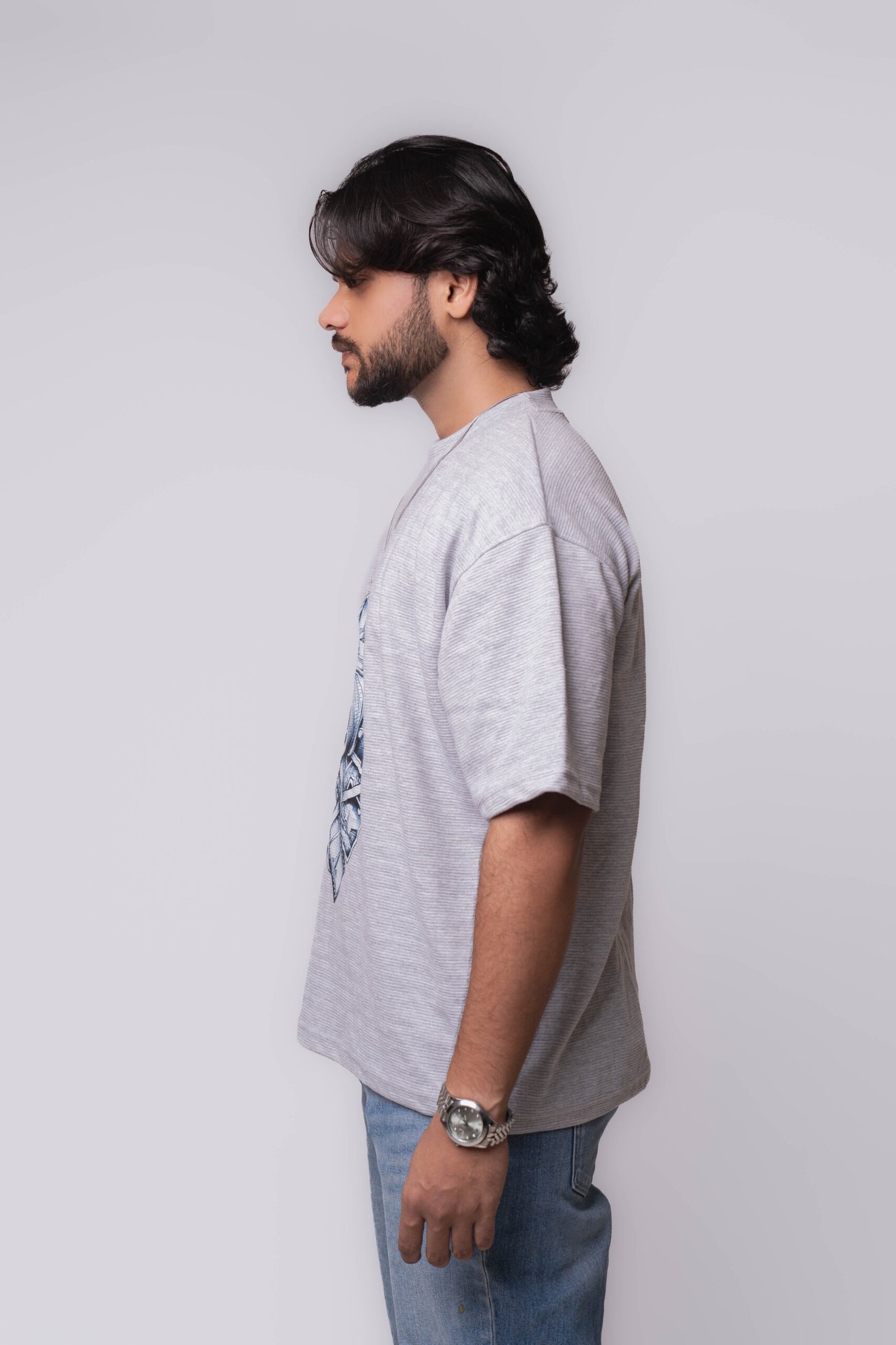 Light grey base with a relaxed, oversized streetwear fit