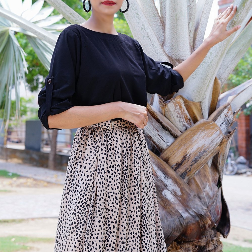Bring timeless elegance to your wardrobe with our Black & Beige Polka Maxi Dress — where sophistication meets comfort. The soft, flowy fabric drapes beautifully, featuring a black boat-neck top and a breezy beige polka-printed skirt for a graceful two-tone contrast.